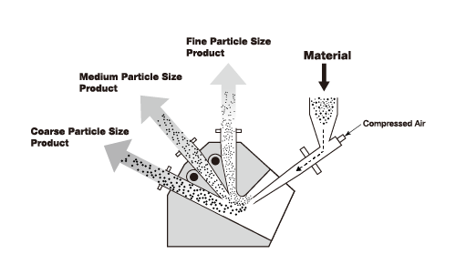 HIPREC分级机是利用柯恩达效应(Coanda effect(流体倾向于贴着表面流动)),可一次分出3种产品的气流分级机。