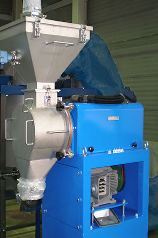 ケーシングに取り付けられた固定刃により、投入原料を破砕する装置です。